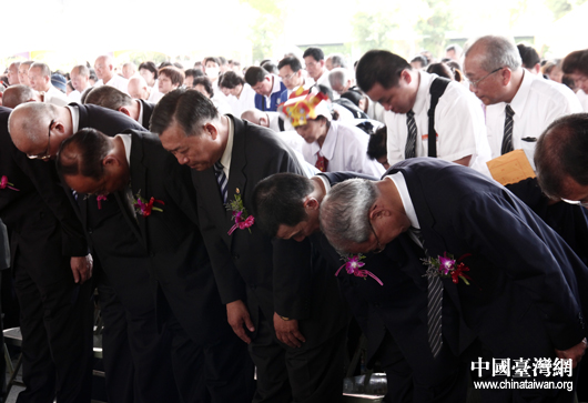 现场嘉宾向孔子像鞠躬敬礼(中国台湾网 邢同林 摄)