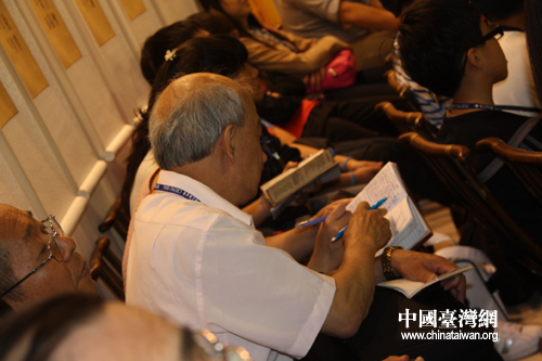 从稚龄孩童到古稀老人,不分年龄与地域,来自两岸的近百名民众为探讨“孝道”14日聚集在济南市孔子文化会馆,聆听知名专家讲座,交流对传统文化经典的认知。(中国台湾网 杨丽 摄)
