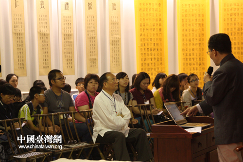 来自两岸的近百名民众,从稚龄孩童到古稀老人,不分年龄与地域,为探讨“孝道”14日上午聚集在济南市孔子文化会馆,聆听知名专家讲座,交流对传统文化经典的认知。(中国台湾网 杨丽 摄)