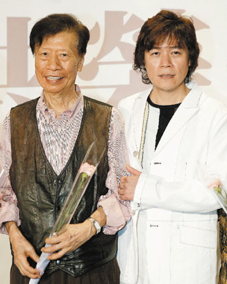 洪一峰(左)和洪荣宏父子情深,四年前洪一峰曾到儿子的演唱会记者会上打气,当时他已有心脏疾病。图/本报数据照片