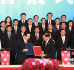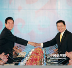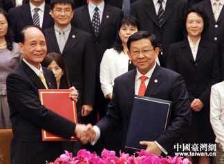 | 海协会会长陈德铭与台湾海基会董事长林中森21日下午2时许在上海签署了《海峡两岸服务贸易协议》及其附件,这是两岸两会自2008年6月恢复制度性协商以来签署的第19项协议。 |
