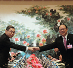 | 6月20日下午,海协会常务副会长郑立中与台湾海基会副董事长高孔廉,在上海进行两会第九次会谈预备性磋商,就海峡两岸服务贸易协议签署达成一致,为明天正式会谈做最后准备。