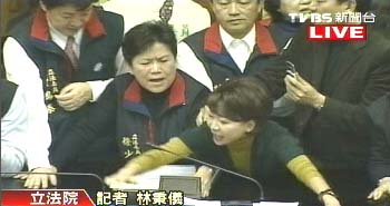 蓝绿“立委”争夺台湾“立法院”主席台。 来源:台湾TVBS电视台
