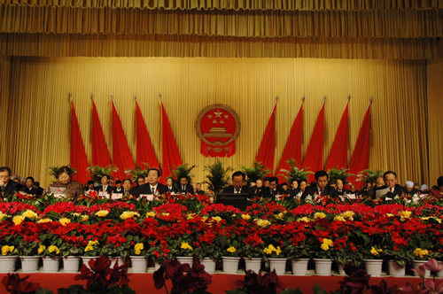 宁夏新闻网讯 2009年1月14日上午9时,宁夏回族自治区第十届人民代表大会第二次会议在雄壮的国歌声中隆重开幕。大会应到代表419人,实到代表383人,符合法定人数。大会主席团常务主席、执行主席陈建国主持大会,常务主席于革胜、马瑞文、冯炯华、张小素、马秀芬、何学清、刘天贵、肖云刚在主席台前排就座。