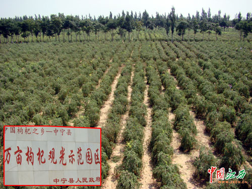中宁是世界枸杞的发源地和正宗原产地,中宁枸杞已有600多年的人工栽培历史,1961年中宁县被国务院确定为全国唯一的枸杞生产基地县,1995年又被国务院命名为“中国枸杞之乡”。2000年又被命名为“中国特产之乡”,中宁枸杞被评为全国十佳农产品,素有“天下黄河富宁夏,中宁枸杞甲天下”的美誉。中宁县的枸杞总面积目前已经达到13万亩。