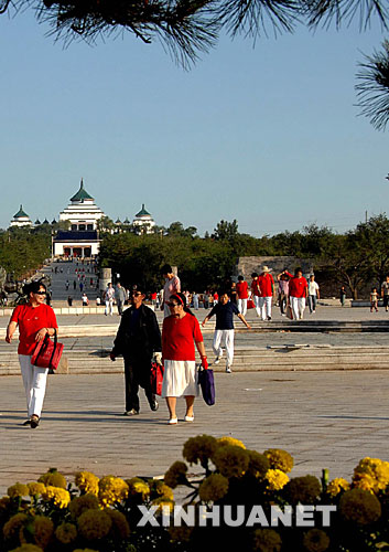 乌兰浩特市的市民在成吉思汗庙广场休闲(7月28日摄)。新华社记者 李欣 摄