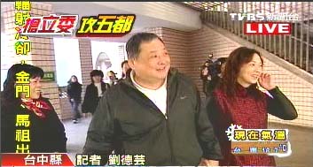 国民党籍台中县“立委”提名人余文钦和太太赴投票所投票。 来源:台湾TVBS电视台