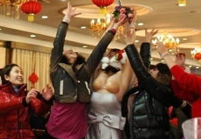 卖力姐大S婚礼现场疯狂抢花露Bra