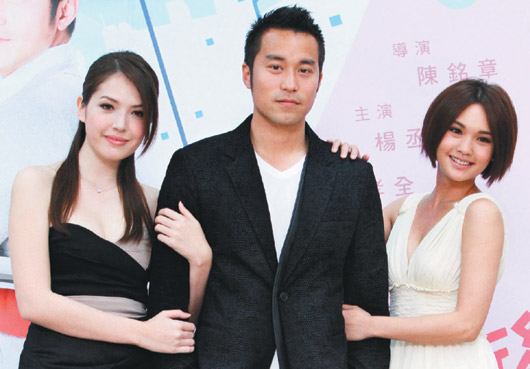 许玮宁(左起)、张孝全、杨丞琳出席台湾偶像剧“醉后决定爱上你”试片。图片来源:台湾《联合报》