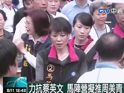 中国台湾网5月11日消息 据台湾“今日新闻网”报道,国民党、民进党2012“大选”提名均已确定,马英九、蔡英文将展开“双英对决”。据国民党高层人士指出,马英九竞选办公室将设“夫人组”,抢攻妇女票与青年选票,而他的夫人周美青就是他对抗蔡英文的“王牌”。该人士表示,马英九阵营打出这张“夫人牌”,主要是看准周美青在基层人气更胜马英九,触角可深入各层面,由夫人下乡跑组织、跑行程,基层配合辅选的意愿也较高,因此未来将成马阵营最重要的辅选大将。