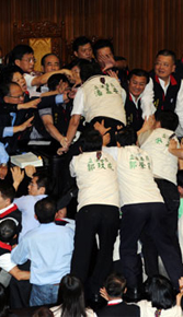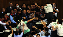 组图:台湾“立法院”爆发肢体冲突 蓝营批蔡英文鼓励暴力 蓝军不惜一战