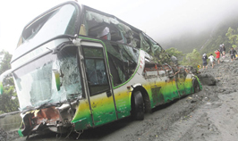 挟带着惊人雨量的“鲇鱼”台风,21日重创宜兰及台湾东北角,导致当地暴雨成灾。台观光部门表示,由于塌方及道路损毁,有24个旅游团共542名大陆旅客被困。截至22日凌晨,创意旅行社承揽的一辆游览车失去联系,车上有19名大陆游客;弘泰旅行社的一辆游览车上,两人生死未明,另有一名游客腿断,导游轻伤。祥华旅行社的一辆车被埋。另外,已有268人脱困,被妥善安置。【详细】
