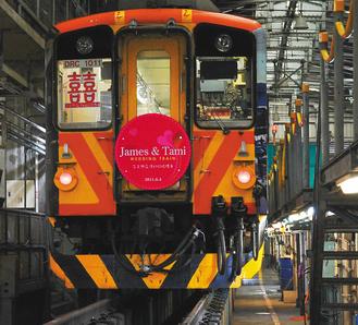 中国台湾网6月4日消息 据台湾《联合报》报道,任职台铁的台湾铁道迷张守正,从小就发愿结婚要以“火车当礼车”,梦想今(4)日终于实现。他租下台铁专车,迎娶交往5年的女友符兹淇。这列从丰原开往松山的“爱情直达车”,也是台铁史上首次开出结婚专车,把两人送往“下一站,幸福”。