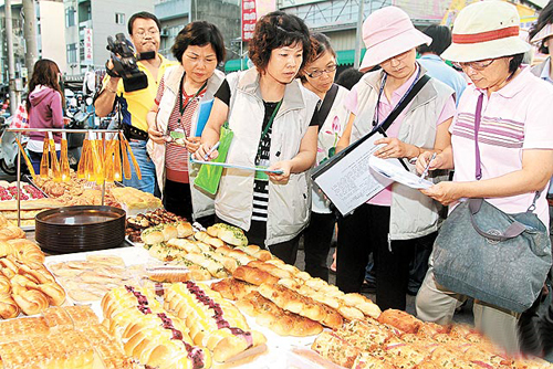 毒果酱流入烘焙业,台南市卫生局人员4日晚到两处夜市稽查面包摊。图片来源:台湾媒体
