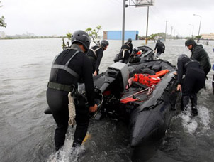 台海军陆战队出动救台风水灾