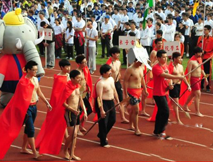 组图:台湾中原大学运动会 猛男画出人鱼线