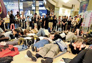 响应“占领运动” 台湾数百网友台北101大楼静坐