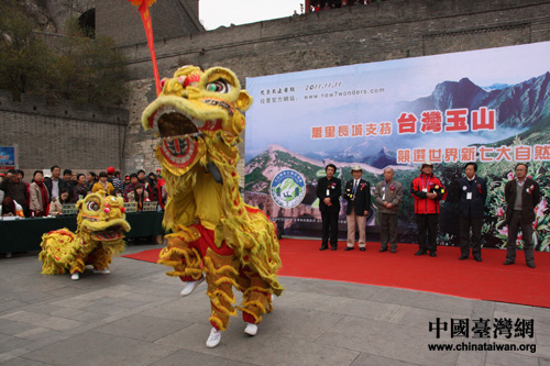 万里长城支持台湾玉山竞选世界新七大自然奇观活动在居庸关长城举行(中国台湾网 王文英 摄)