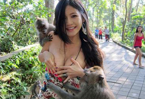 台湾美女在巴厘岛遭猴子“调戏” 引全球关注