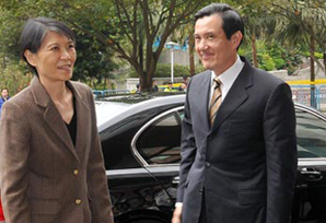 马英九携夫人出席辩论会 “情侣装”吸眼球
