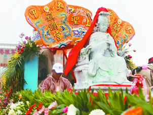 湄洲妈祖庙赠送翡翠妈祖像14日抵台 迎驾信众跪拜
