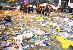 台北跨年晚会留下17吨垃圾 宛如暴动过后