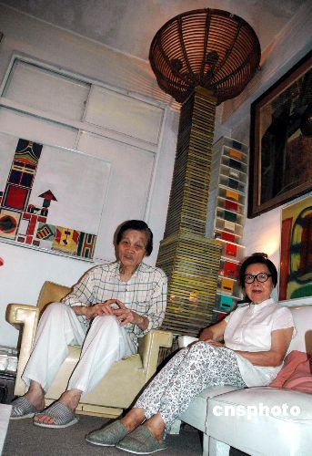 年近八旬的台湾著名诗坛伉俪罗门和蓉子夫妇固守“诗国”家园五十余载。图为近日罗门和蓉子夫妇接受采访时,在“灯屋”留影。 中新社发 王辛莉 摄
