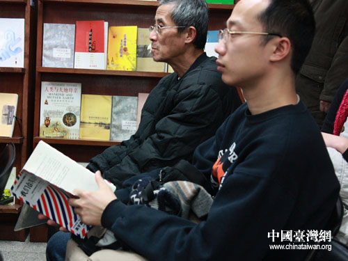 在交流过程中,一位认真聆听并认真记录的老先生,来自湖北黄冈的已退休的中学校长闻立玮,吸引了记者的目光。“看了这本书之后我更加深刻地体会到,两岸同胞确实需要沟通和了解,以往我们对台湾的了解确实是比较片面的,这本书让我了解到台湾同胞对政治、社会一些沟通上的态度。”闻立玮说,“可见我们两岸同胞的交流还应该更广泛,因此我认为可以加强两岸青少年的交流,并且将交流和沟通深入到家庭、社区里面,这样可以了解两岸民众最真实的想法。”(本网记者 徐维彬)