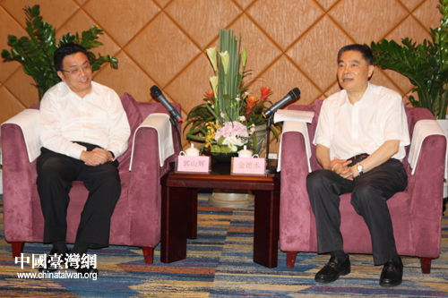 浙江省副省长金德水会见全国台企联会长郭山辉等台商代表。(中国台湾网 肖燕 摄)