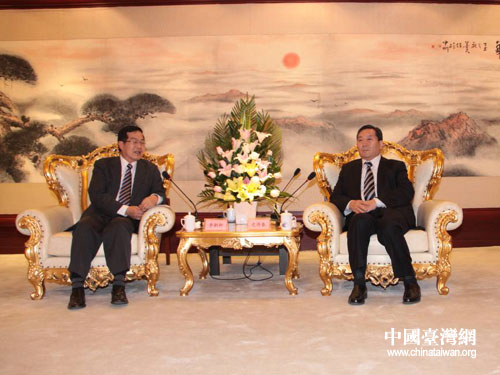 副省长史济春(右)会见南投县县长李朝卿。图片来源:河南省台办