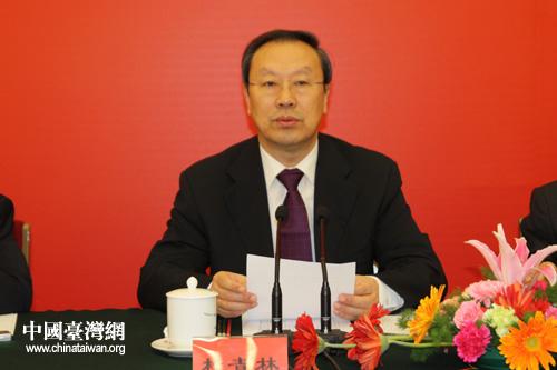 全国政协副主席、中共中央统战部部长、中国和平统一促进会执行副会长杜青林出席会议并讲话。(中国台湾网 赵辉 摄)