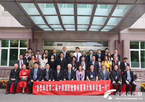 参加会见的民革中央领导与“第二届中国国民党青年菁英大陆参访团”成员合影(中国台湾网 高斯斯 摄)