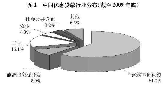 优惠贷款主要用于帮助受援国建设有经济效益和社会效益的生产性项目和大中型基础设施,或提供成套设备、机电产品、技术服务以及其他物资等。优惠贷款本金由中国进出口银行通过市场筹措,贷款利率低于中国人民银行公布的基准利率,由此产生的利息差额由国家财政补贴。目前,中国提供的优惠贷款年利率一般为2%至3%,期限一般为15年至20年(含5年至7年宽限期)。截至2009年底,中国共向76个国家提供了优惠贷款,支持项目325个,其中建成142个。中国提供的优惠贷款61%用于帮助发展中国家建设交通、通讯、电力等基础设施,8.9%用于支持石油、矿产等能源和资源开发。
