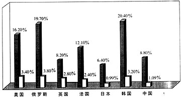 图表41997年度中国与部分国家国防费占国内生产总值(GDP)和财政支出比例的比较