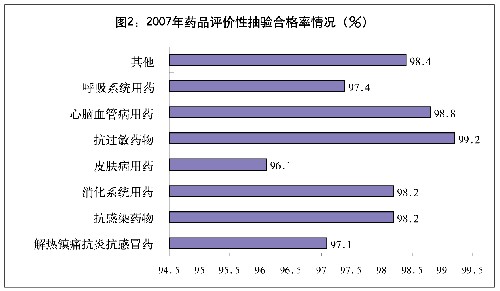 图表:图2:2007年药品评价性抽验合格率情况 新华社发