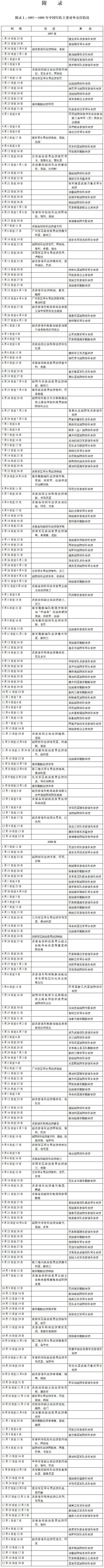 附录1:2007—2008年中国军队主要对外交往情况