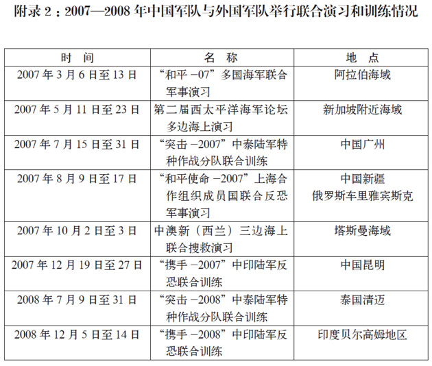 附录2:2007—2008年中国军队与外国军队举行联合演习和训练情况