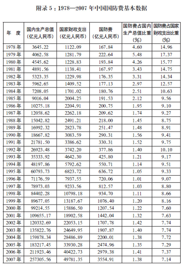 附录5:1978—2007年中国国防费基本数据