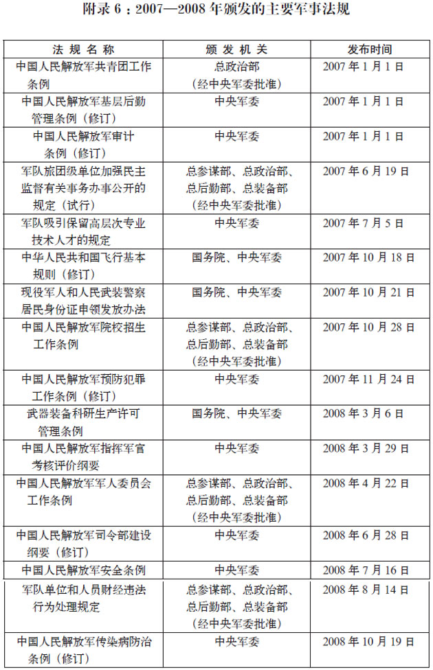 附录6:2007—2008年颁发的主要军事法规