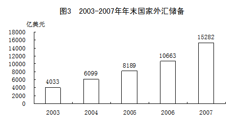 年末国家外汇储备15282亿美元,比上年末增加4619亿美元。年末人民币汇率为1美元兑7.3046元人民币,比上年末升值6.9%。