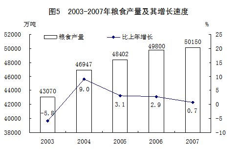 全年粮食产量50150万吨,比上年增加350万吨,增产0.7%,其中,夏粮产量11534万吨,增产1.3%;早稻产量3196万吨,增产0.3%;秋粮产量35420万吨,增产0.6%。