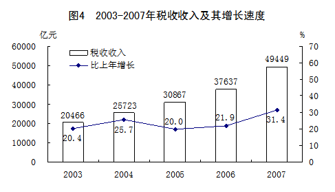 全年税收收入49449亿元(不包括关税、耕地占用税和契税),比上年增加11813亿元,增长31.4%。