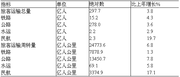 表13:2009年各种运输方式完成旅客运输量及其增长速度
