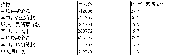 全年国内出游人数达19.0亿人次,比上年增长11.1%;国内旅游收入10184亿元,增长16.4%。入境旅游人数12648万人次,下降2.7%。其中,外国人2194万人次,下降9.8%;香港、澳门和台湾同胞10454万人次,下降1.1%。在入境旅游者中,过夜旅游者5088万人次,下降4.1%。国际旅游外汇收入397亿美元,下降2.9%。国内居民出境人数达4766万人次,增长4.0%。其中因私出境4221万人次,增长5.2%,占出境人数的88.6%。 八、金融 年末广义货币供应量(M2)余额为60.6万亿元,比上年末增长27.7%;狭义货币供应量(M1)余额为22.0万亿元,增长32.4%;流通中现金(M0)余额为3.8万亿元,增长11.8%。 年末全部金融机构本外币各项存款余额61.2万亿元,比年初增加13.2万亿元。其中人民币各项存款余额59.8万亿元,增加13.1万亿元。全部金融机构本外币各项贷款余额42.6万亿元,增加10.5万亿元。其中人民币各项贷款余额40.0万亿元,增加9.6万亿元。 表14:2009年全部金融机构本外币存贷款及其增长速度 单位:亿元