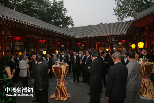 8月27日,中共中央台办、国务院台办主任王毅在钓鱼台国宾馆举行欢迎酒会,欢迎前来北京出席台商座谈会的台湾工商界人士和大陆台商代表。这是欢迎酒会现场。