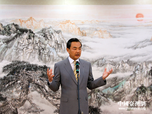9月19日下午,中共中央台办主任王毅在为祝贺中国互联网协会海峡两岸互联网交流委员会成立举行的招待酒会上致辞。(中国台湾网 王伟 摄)