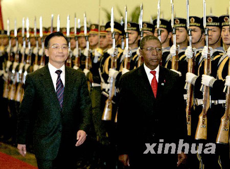 12月1日,国务院总理温家宝在北京人民大会堂北大厅举行仪式,欢迎莱索托首相莫西西利访华。新华社记者高洁摄