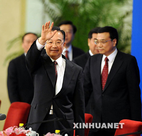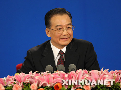 3月18日,国务院总理温家宝和副总理李克强、回良玉、张德江、王岐山在北京人民大会堂与中外记者见面,并回答记者提问。 新华社记者姚大伟摄