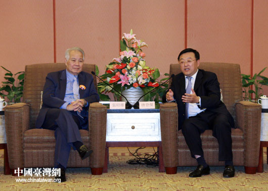 11月5日,上海市副市长唐登杰在上海会见参加两岸农渔水利合作交流会的亲民党副主席张昭雄。(中国台湾网 钟宝华 摄)