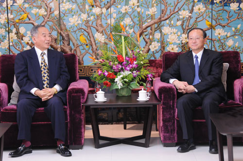 1月18日,国家旅游局局长、海峡两岸旅游交流协会会长邵琪伟在京会见了台湾观光协会会长周庆雄。